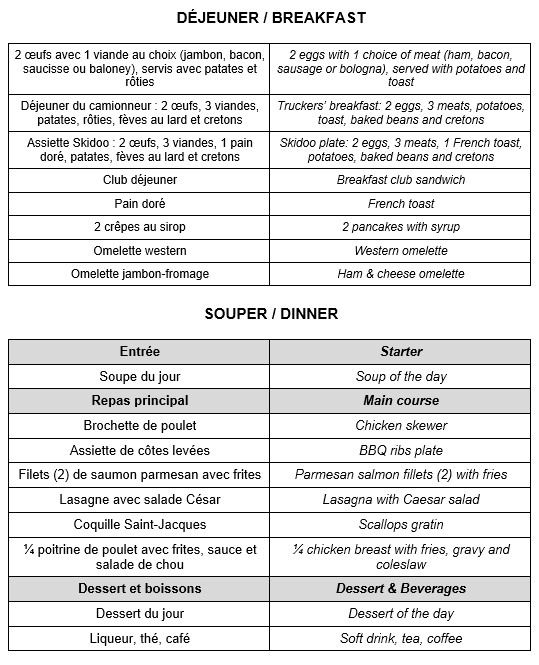 Menu - Resto Pub Le Boréal